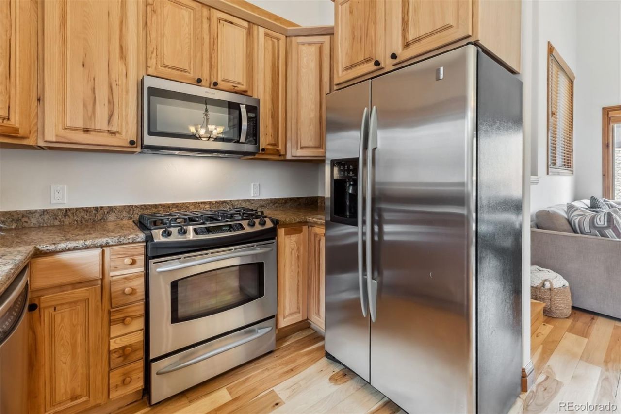 Discover the perfect blend of mountain luxury and everyday comfort in this stunning 3-bedroom, 3-bath duplex nestled on a rare 17,000 square foot lot in the peaceful woods of Oro Ridge, just a short walk from the base of Peak 8 in Breckenridge. Designed to feel like a single-family home, this unique property boasts soaring 20-foot ceilings and dramatic multi-level architecture that maximizes space and light. Enjoy radiant in-floor heat, a gourmet kitchen with granite counters, hickory cabinets and floors, and stainless steel appliances, plus a cozy living room with a stacked rock fireplace. The main floor master suite offers a private retreat with its own fireplace, and the indoor hot tub invites relaxation after a day on the slopes. Step outside to frequent wildlife encounters?foxes and moose are regular visitors?and take advantage of walkable access to the Breckenridge Nordic Center, Cucumber Gulch Wildlife Preserve, the free gondola and town shuttle. Whether youre seeking a peaceful full-time residence or a high-demand long term vacation rental, this home delivers unmatched convenience, privacy and alpine charm.