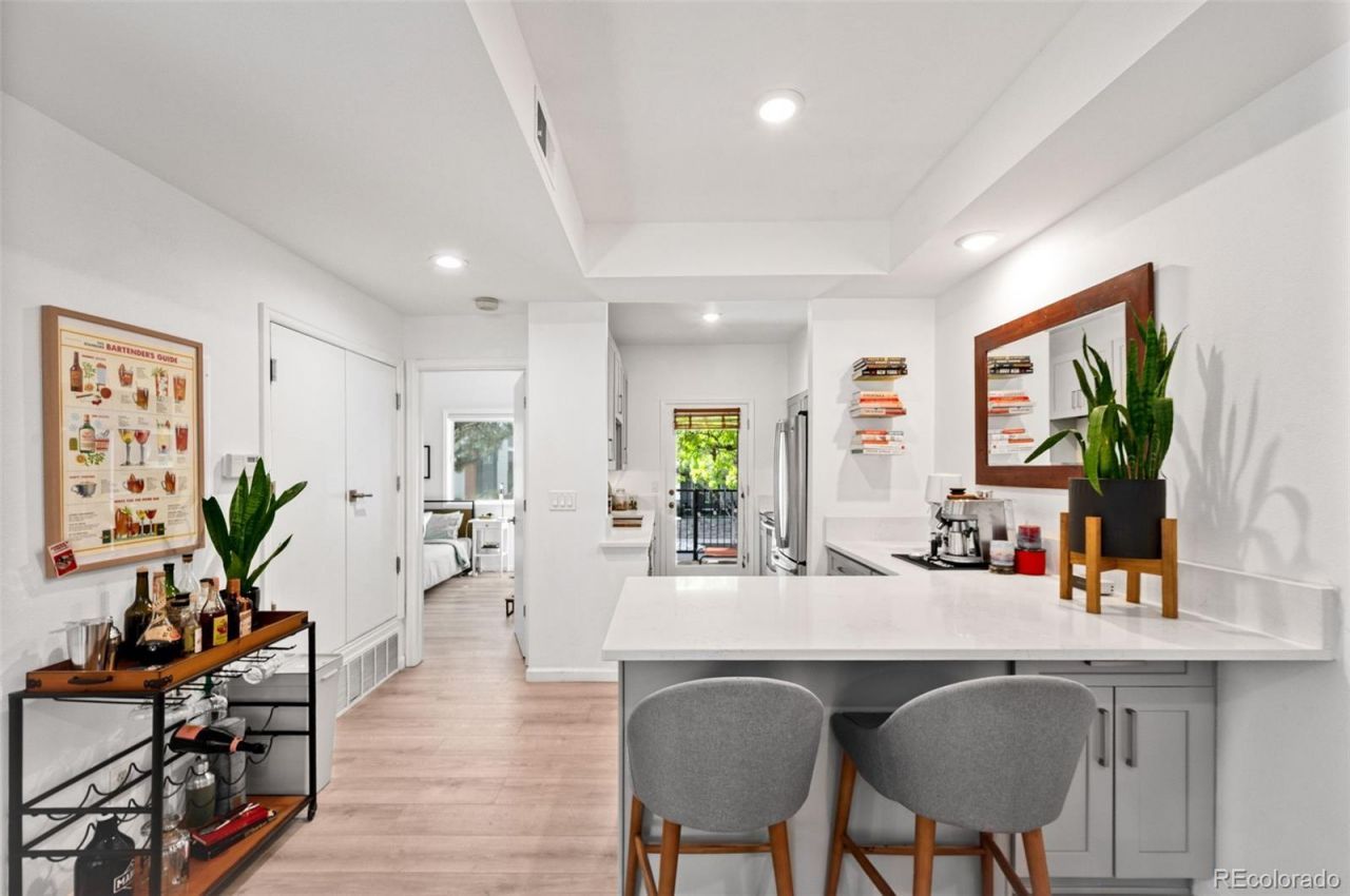 Nestled in the heart of Cherry Creek, this beautifully renovated one-bedroom condo is ready for you to move right in. If youve been searching for a place that just feels right the moment you walk in, this is it. The open-concept layout connects the living, dining, and kitchen areas in a way that makes the space feel both expansive and inviting ? perfect for a laid-back night in or having friends over for dinner. The kitchen is a highlight: quartz countertops, stainless steel appliances, plenty of cabinet space, and a breakfast bar that makes morning coffee or a quick bite feel just a little more enjoyable. Speaking of morning coffee ? step out onto your private patio and start the day the right way. The primary suite is your personal retreat, offering generous closet space and a spa-inspired ensuite bathroom that turns your daily routine into something worth looking forward to. Clean lines, neutral tones, and high-end finishes throughout give the whole home a polished, move-in-ready feel. And the location? Hard to beat. Youre steps away from Cherry Creeks best shops, restaurants, parks, and transit options ? the kind of neighborhood that makes life genuinely easier and more fun. This condo comes with one reserved parking space in the secure covered parking garage along with a private storage closet, and the ability to use another parking space. Come see it for yourself and schedule your showing today!